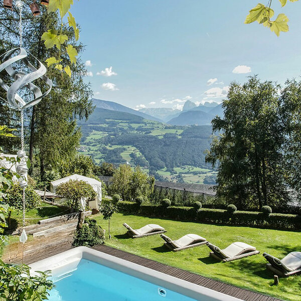 Unser exklusives Schwimmbad bietet eine kraftvolle Gegenstromanlage mit einem integrierten Whirlpool. Es ist ein kleiner Geheimtipp in unserem Adults Only Hotel mit Dolomitenblick. Das Wasser wird nachhaltig mit unserer Photovoltaik-Anlage beheizt und sorgt für ein rundum wohliges Gefühl. Eingebettet in unseren idyllischen Naturgarten, können Sie in völliger Privatsphäre die Seele baumeln lassen. Ideal für Paare, die einen Ort der Ruhe suchen – hier verschmelzen Natur, Entspannung und Romantik zu einem unvergesslichen Erlebnis. Lassen Sie sich verzaubern und genießen Sie die Ruhe der Dolomiten in einem exklusiven Ambiente.